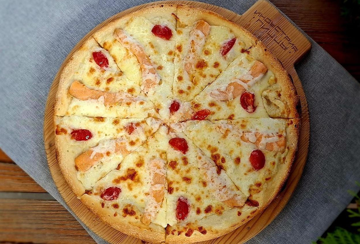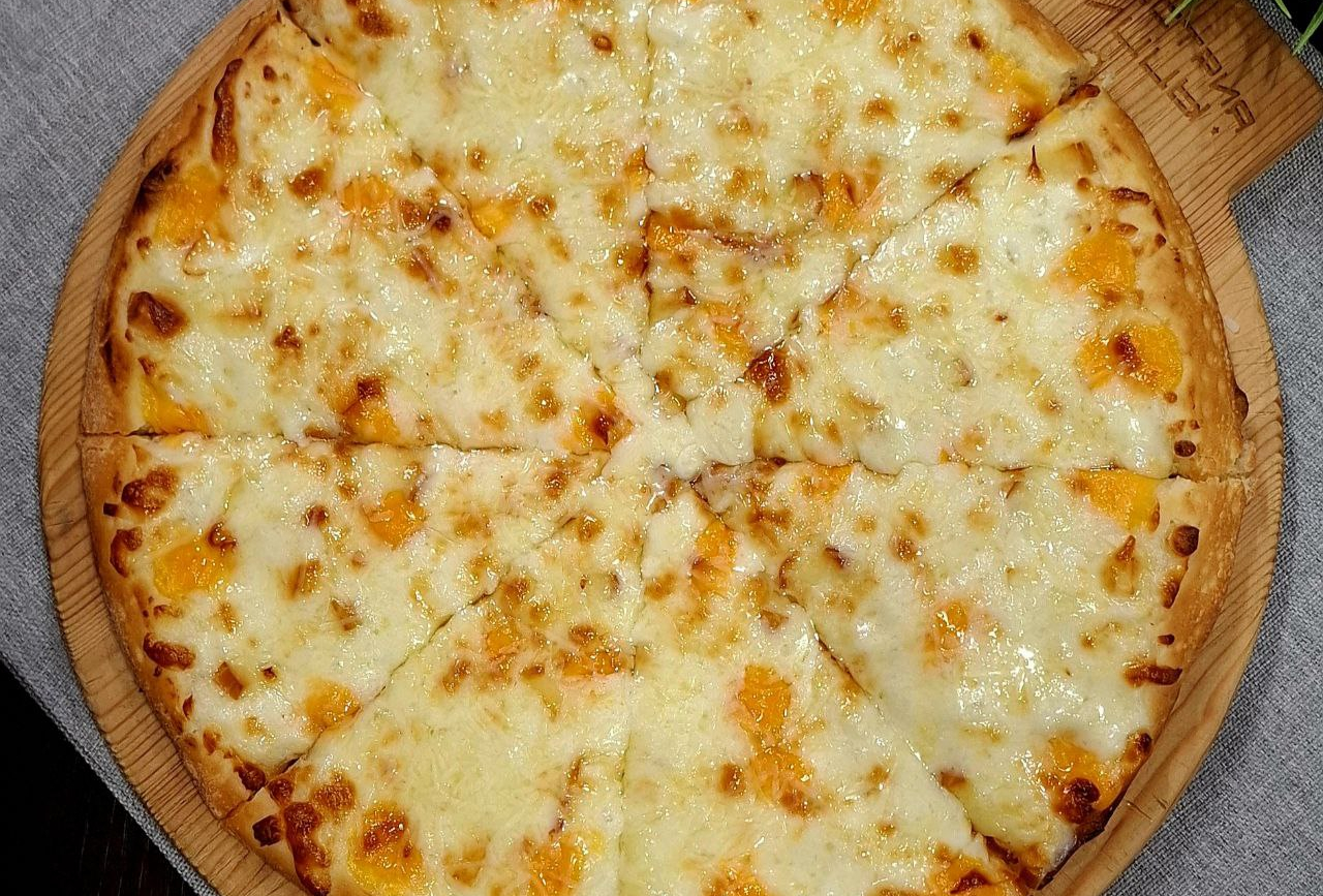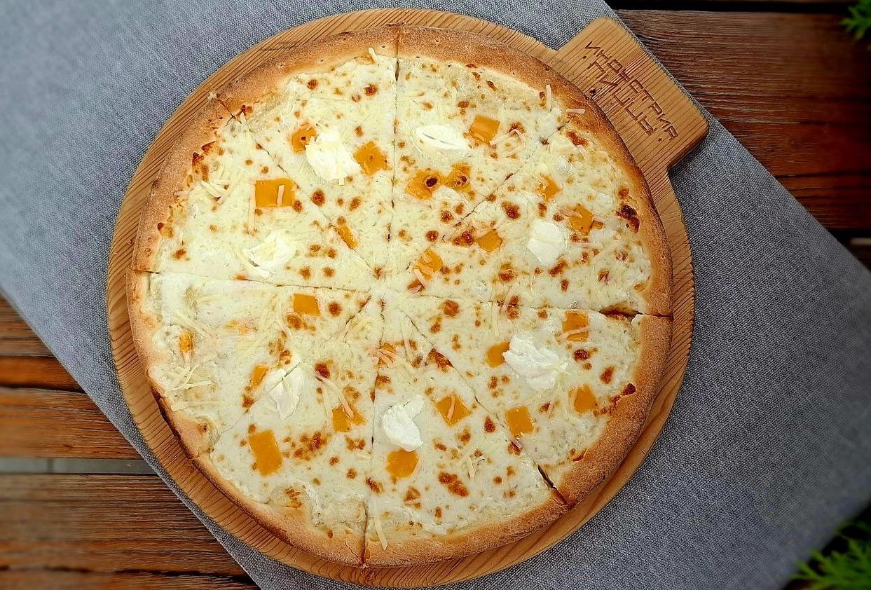 Состав: сливочный соус, моцарелла, сулугуни, сыр пармезан