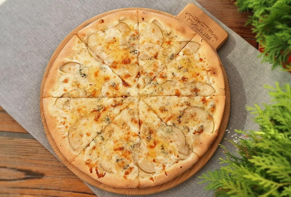 Состав: соус сливочный, моцарелла, груша, горгонзола, грецкие орехи, мёд