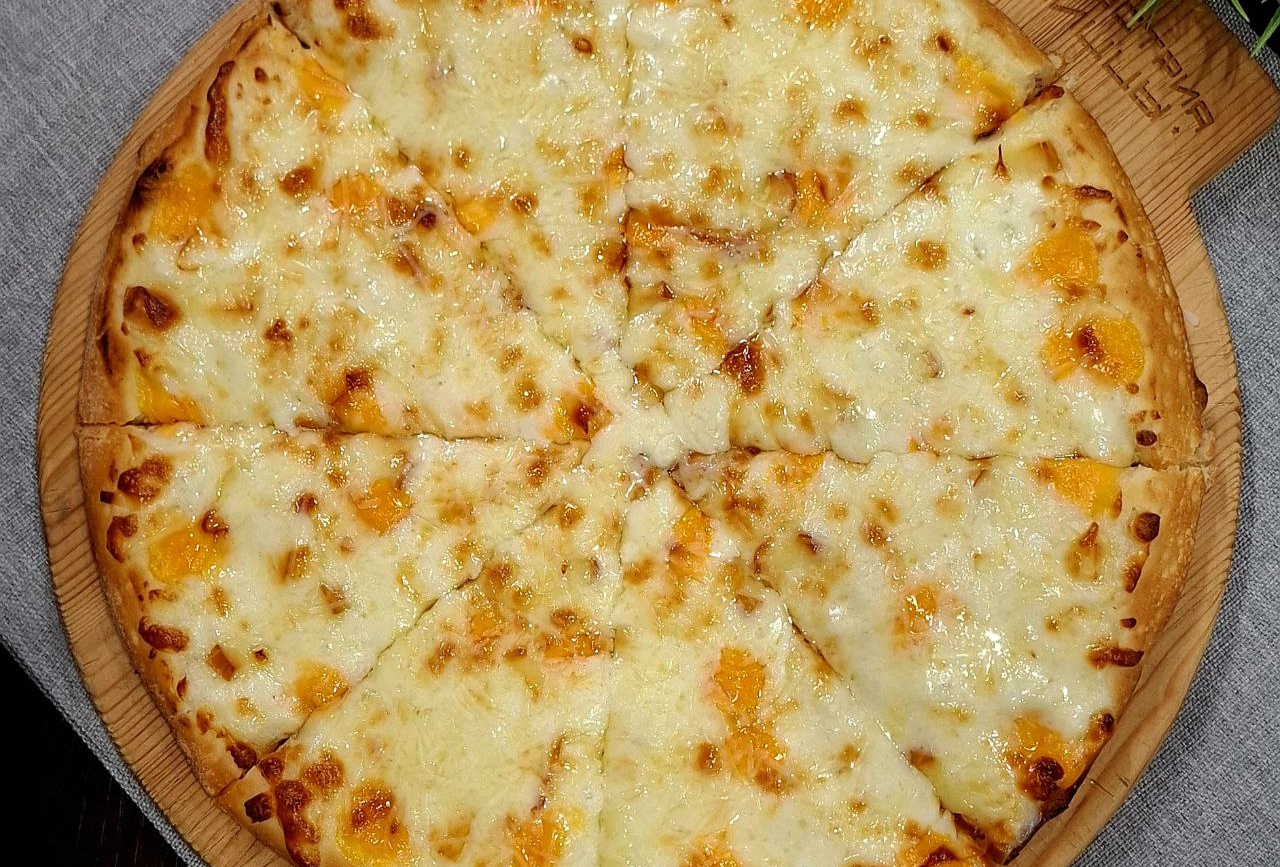 Состав: сливочный соус, моцарелла, сулугуни, сыр пармезан